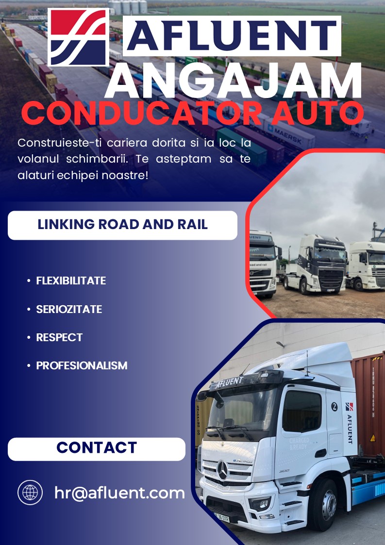 Citește articolulLocație: Arad, România Departament: Logistică / Transport Tip job: Full-time Descrierea postului: Compania AFLUENT Arad South Terminal își extinde echipa și caută un Agent de Transport dedicat, responsabil și orientat către performanță. Rolul implică coordonarea operațiunilor de transport și asigurarea fluxului eficient de mărfuri în cadrul terminalului nostru logistic din Arad. Responsabilități principale: Organizarea […]